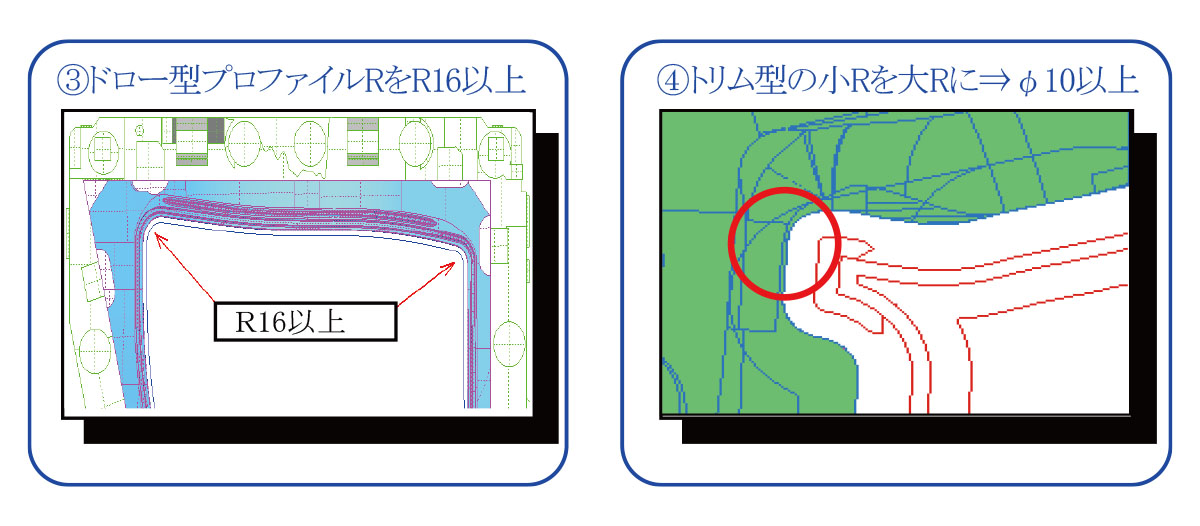 ◆形状凍結技術・Hi-TEN 技術・金型加工技術に対応できるインテリジェントテクニックを活用した高効率CAD/CAM データを提供します。