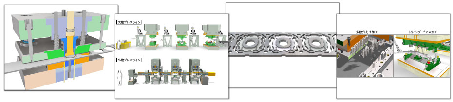 プレス加工における金型などの動きをCGアニメーションで表現することにより、